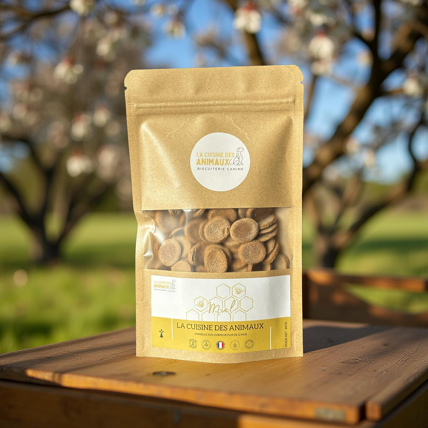 Nos biscuits au miel sont confectionnés artisanalement pour offrir à votre chien une gourmandise douce et naturellement savoureuse. Le miel apporte une note sucrée subtile très appréciée, tout en participant au bien-être général de votre compagnon. Ces biscuits croquants sont idéals comme récompense ou petit plaisir du quotidien. Ils s'inscrivent dans une démarche simple, naturelle et respectueuse de l'alimentation.